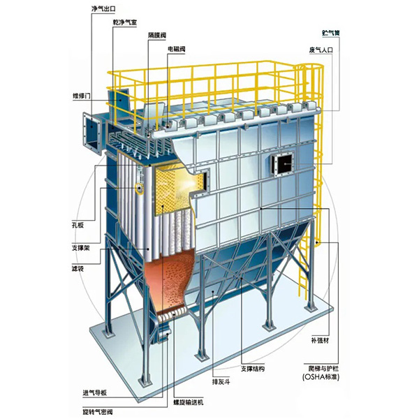 長袋離線脈沖袋式除塵器結(jié)構(gòu):